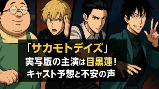アニメNEWS 『サカモトデイズ』実写版の主演は目黒蓮!キャスト予想と不安の声 週刊少年ジャンプで連載中の大人気漫画『サカモトデイズ』が、ついに実写映画化されることになりました。主演を務めるのはSnow Manの目黒蓮さんで、監督は福田雄一監督と発表され、早くもSNSでは話題騒然です。公開は2026年ゴールデンウィーク... 2025.09.23 アニメNEWS